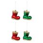 Lot de 4 Sujets de Noël Botte Lutin 8cm Rouge & Vert