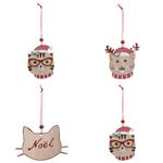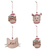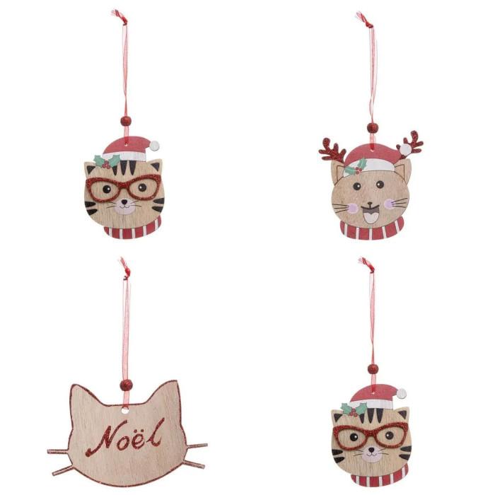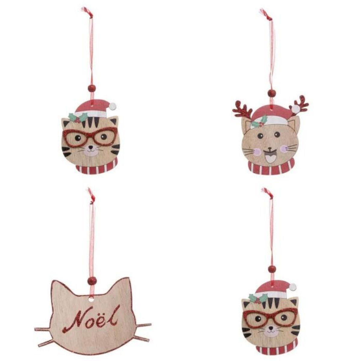 Informations Techniques : Dimensions : L. 8 x l. 0,5 x H. 12,5 cm Matière : Bois Spécificités : Pratique & Utile Lot de 4 Sujets de Noël Design Chat Poids : 0,043 kg Couleur : Beige & Rouge