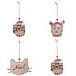 Lot de 4 Sujets de Noël Chat 12cm Beige & Rouge