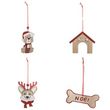 Lot de 4 Sujets de Noël Chien 12cm Beige & Rouge