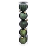Informations Techniques : Dimensions : D. 5 cm Boîte : D. 5 x H. 25 cm Matières : Plastique Spécificités : Pratique & Utile Lot de 5 Boules de Noël Forme Ronde Design : Paillettes, Brillant & Mat Poids : 0,045 kg Couleur : Vert Olive
