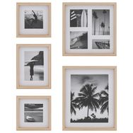 Ce lot de 5 cadres photos vous permettra de laisser libre cours à votre imagination. De forme carrée ou rectangulaire et avec différents formats, ces cadres en bois mettront joliment en valeur vos souvenirs. Les passe-partout peuvent s'enlever. À accrocher au mur, en position verticale ou horizontal