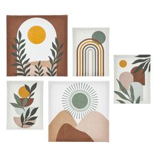 Lot de 5 toiles imprimées SOLEIL - Multicolore