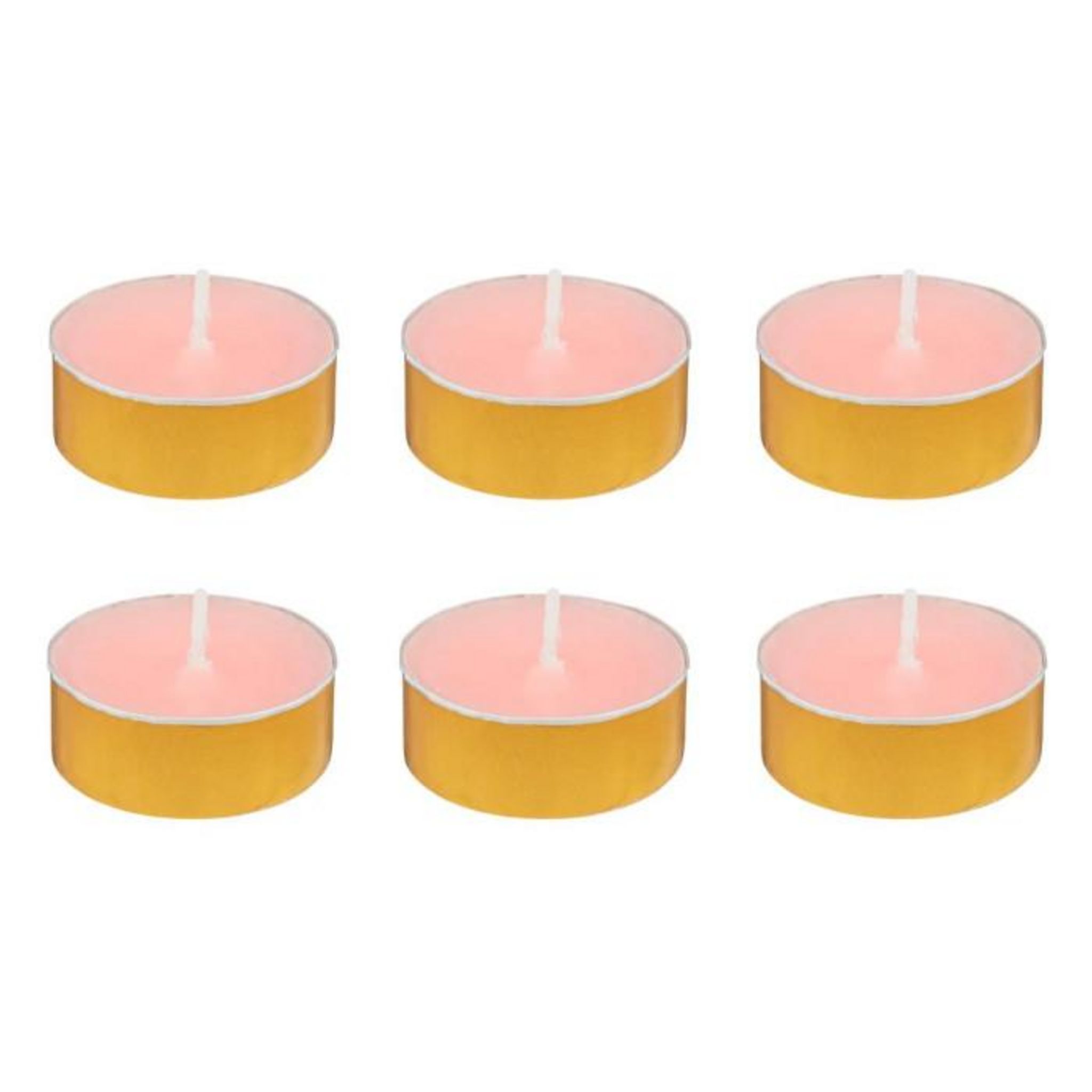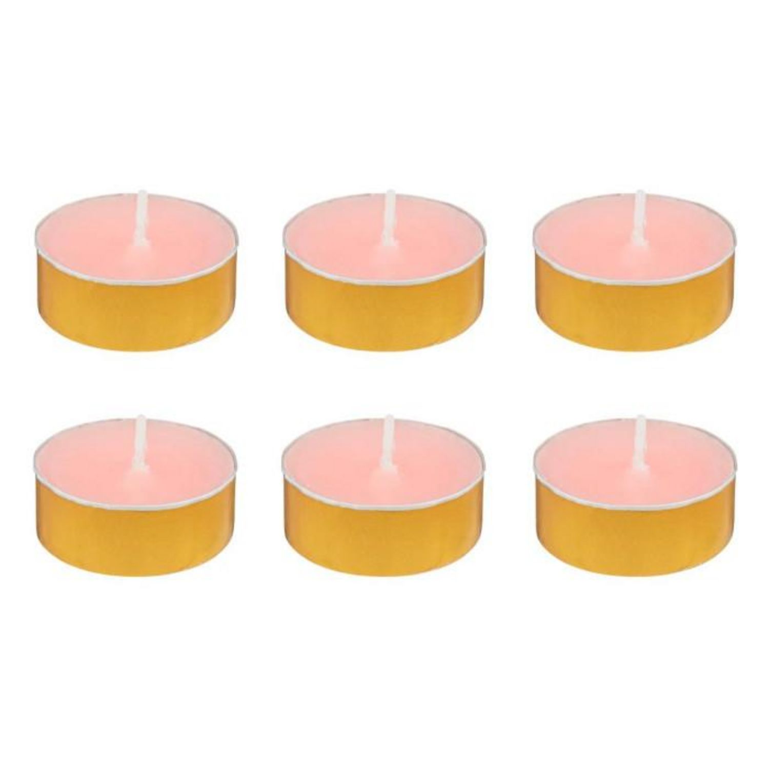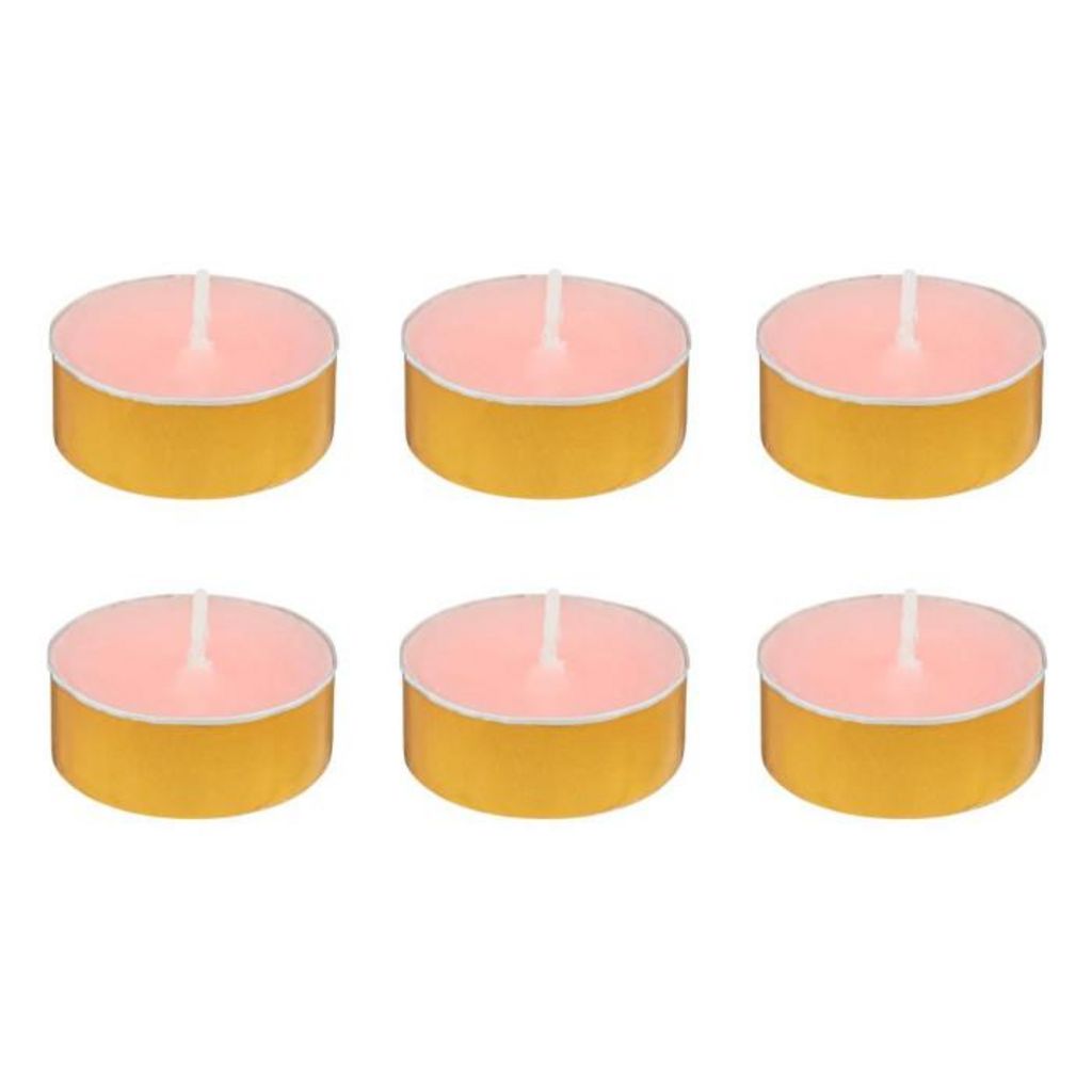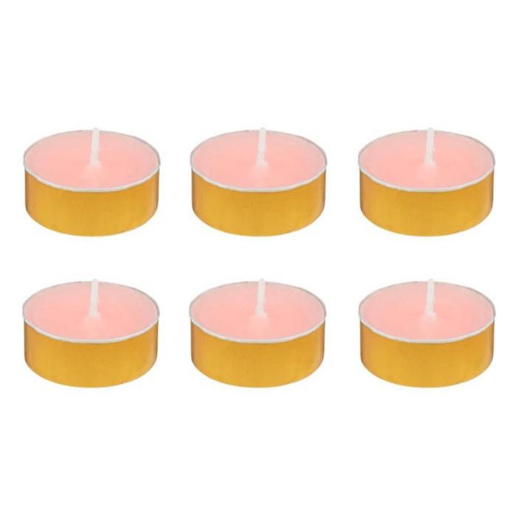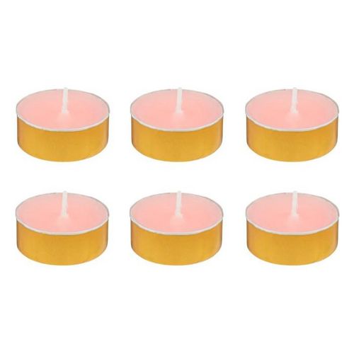 Informations Techniques : Dimensions : D. 3,72 x H. 1,5 cm Matières : Paraffine & Cire (Palme) Spécificités : Déco & Pratique Lot de 6 bougies chauffe-plat parfumées Avec 6 coupelles dorées Forme ronde Senteur : Jasmin impérial Type de fragrance : Florale Poids : 0,07 kg Couleur : Rose &