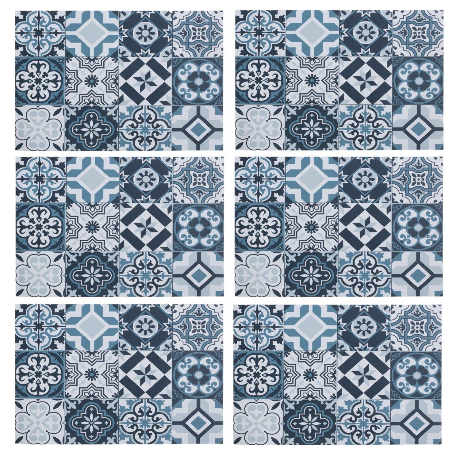 Lot de 6 sets de table mosaïque carreaux de ciment - 45 x 30 cm - Bleu