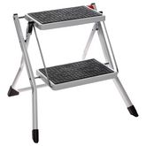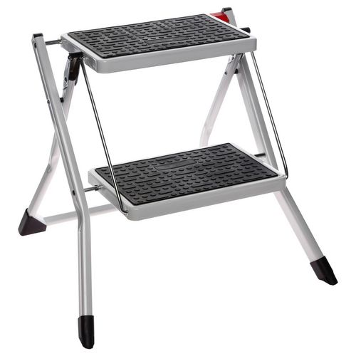 Marche pied à deux marches avec revêtement antidérapant.FICHE TECHNIQUE- Marche pied en fer et acier chromé.- Revêtement des marches en polypropylène.- Verrouillage de sécurité.- Revêtement anti-dérapant sur les marches et les pieds.- Pliable, il est facile et rapide à ranger.- Certification TUV et