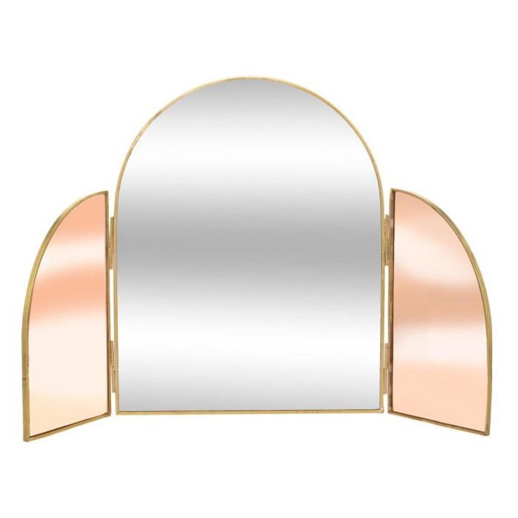 Informations Techniques : Dimensions : L. 25 x H. 40,5 cm Matières : Laiton & Verre Spécificités : Vintage & Glamour Miroir qui s'ouvre Poids : 0,57 kg Couleur : Rose
