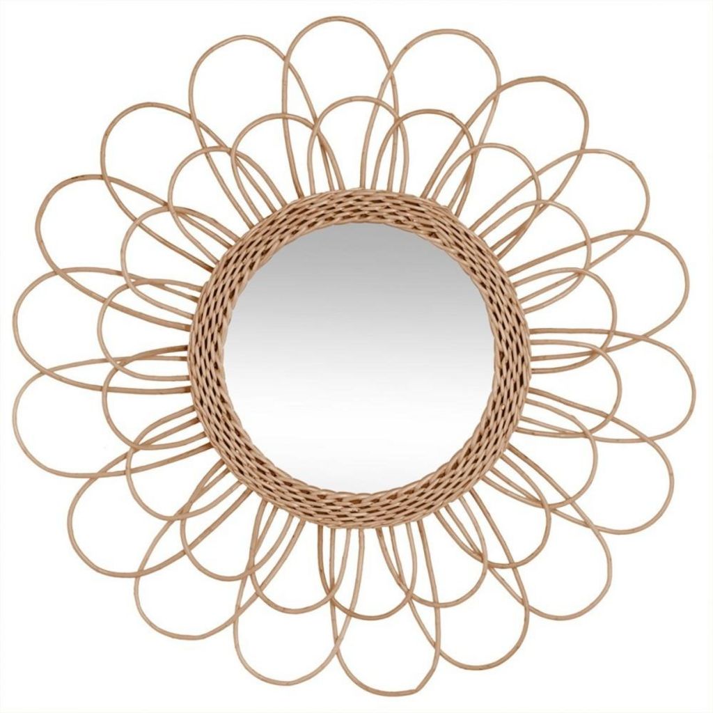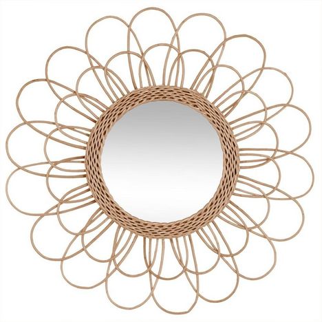 Miroir en rotin fleur D 56 cmPartenaire incontournable de la maison, ce miroir en rotin naturel fleur de 56 cm de diamètre est l'accessoire déco tendance qu'il vous manquait.Que ce soit pour la simple décoration ou pour son utilité, ce miroir avec sa structure en rotin couleur naturelle ajoutera une