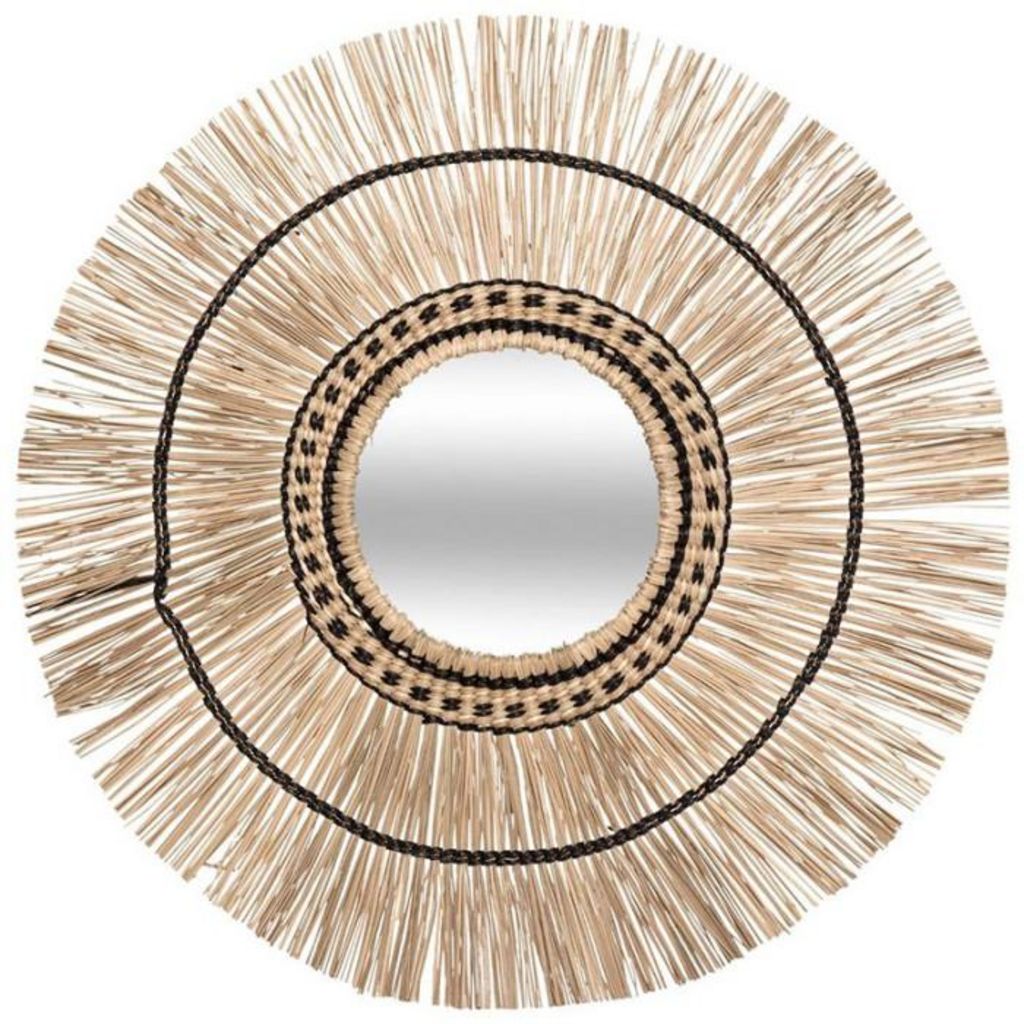 Informations Techniques : Dimensions : D. 60 x H. 3 cm Matières : Roseau & Verre Spécificités : Design & Moderne Miroir Mural Forme Ronde Facile d'entretien & d'utilisation Couleur : Naturel