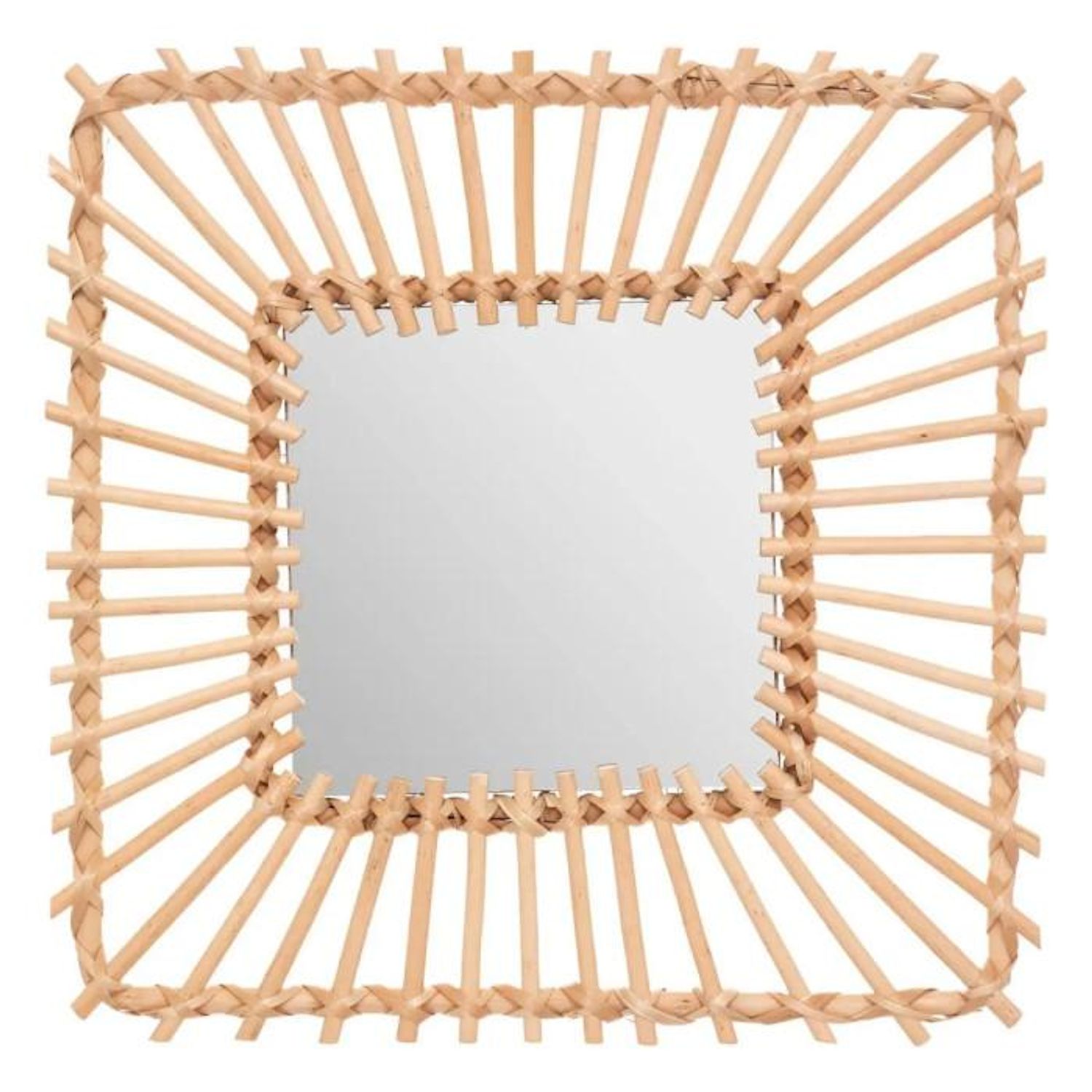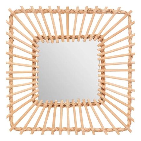 Miroir Mural Design Rotin Carré 40cm Beige