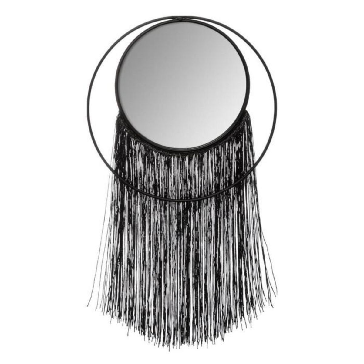 Informations Techniques : Dimensions : L. 27,2 x l. 1,5 x H. 48 cm Surface miroir : D. 18,2 cm Hauteur franges : 28 cm Matières : Fer, Verre & MDF Spécificités : Design & Charmant Miroir mural rond à franges Facile d'utilisation & d'entretien Poids : 0,445 kg Couleur : Noir