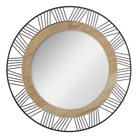 Miroir Rond en Métal & Bois Joe 45cm Noir
