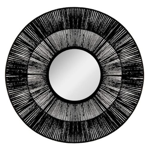 Miroir Rond Motif Ethnique Landy 76cm Noir