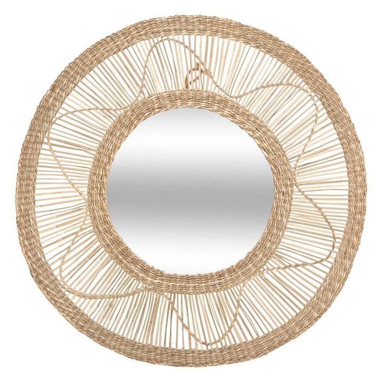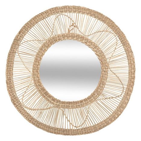 En savoir +Miroir rond seagrass Fleur D58Partenaire incontournable de la maison, ce miroir rond en rotin seagrass Fleur de 58 cm de diamètre est l'accessoire déco tendance qu'il vous manquait.Que ce soit pour la simple décoration ou pour son utilité, ce miroir avec sa structure en rotin couleur naturelle beige ajoutera une touche bohème chic à votre intérieur.Information sur le miroir rond seagrass Fleur D58 :Dimensions : D. 58 x P. 8 cmMatière : roseau, verrePoids : 720 g