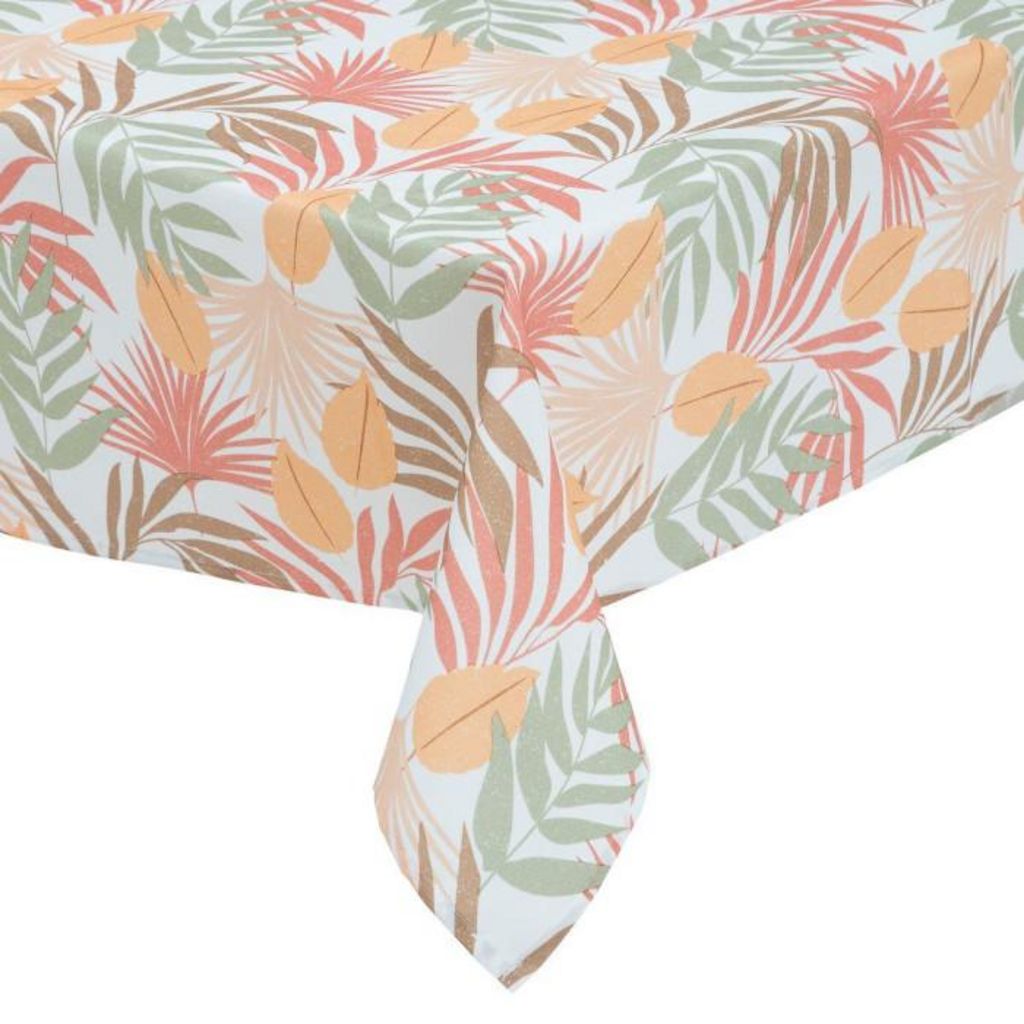 Informations Techniques : Dimensions : L. 240 x l. 140 x H. 0,1 cm Matière : Polyester Spécificités : Pratique & Utile Nappe déco 6-8 personnes Motif feuilles Traitement anti-tâches Lavage en machine à 30°C Repassage à faible température (max 110°c) Finition : Ourlet et enduit Poids : 0,