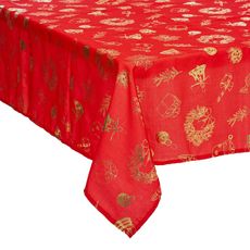 Nappe de Noël rectangulaire à motifs - L. 140 x 240 cm - Rouge et doré