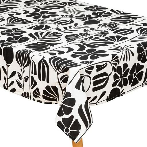 Informations Techniques : Dimensions : L. 250 x l. 150 x H. 0,1 cm Matière : Coton Spécificités : Déco & Utile Nappe rectangulaire Design bicolore Imprimé végétal Lavable en machine à 30° Poids : 0,65 kg Couleur : Noir & Blanc