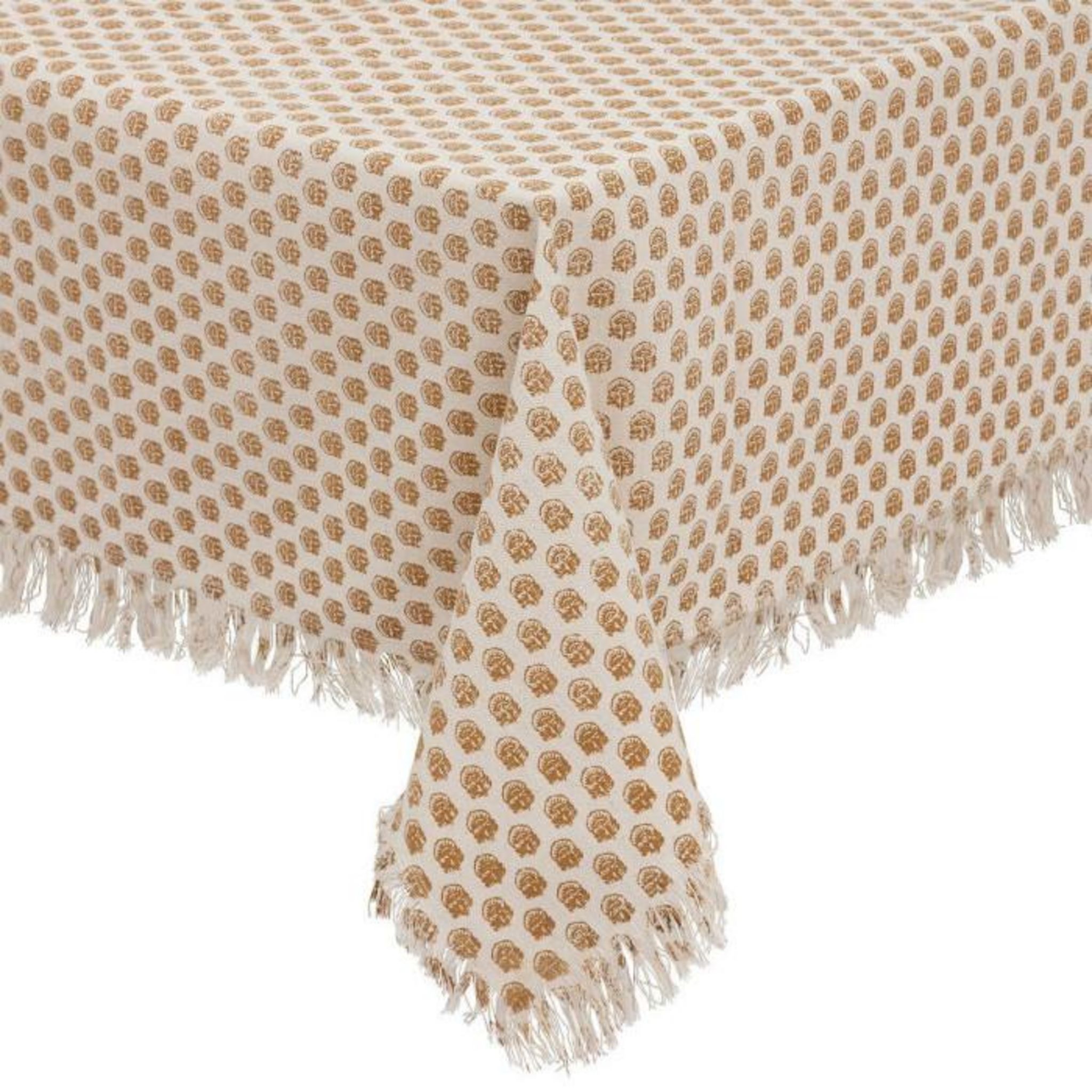 Informations Techniques : Dimensions : L. 250 x l. 150 x H. 0,2 cm Matière : Coton Spécificités : Pratique & Utile Nappe déco Avec franges Imprimé original Poids : 1,25 kg Couleur : Beige