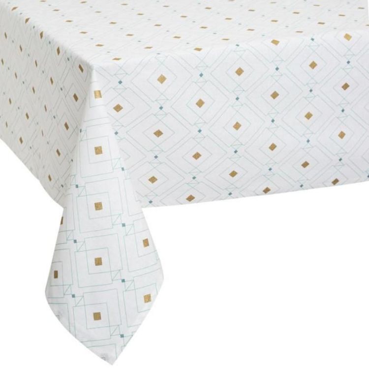 Informations Techniques : Dimensions : L. 140 x l. 240 cm Matière : Coton Spécificités : Design & Élégant Nappe rectangulaire Motif géométrique Forme rectangulaire Facile d'entretien & d'utilisation Poids : 0,6 kg Couleur : Blanc