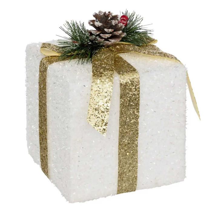 Objet Déco de Noël Cadeau 20cm Blanc & Doré