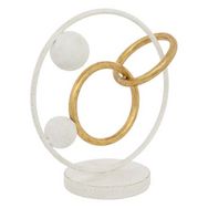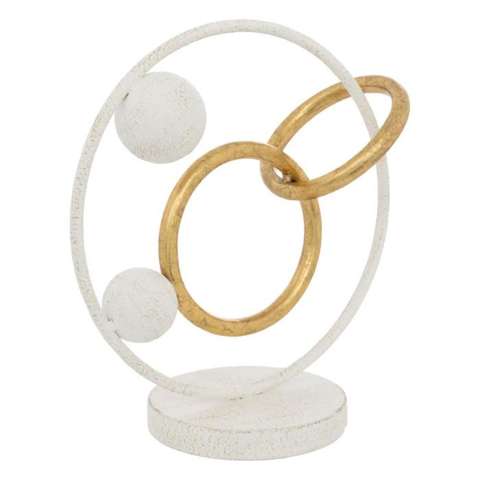 Informations Techniques : Dimensions : L. 24 x l. 14 x H. 30 cm Matière : Métal Spécificités : Chic & Moderne Objet déco à poser Design cercles et ronds Poids : 1,05 kg Couleur : Blanc & Doré