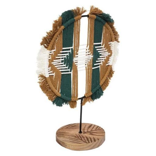 Informations Techniques : Dimensions : L. 20 x l. 12 x H. 30 cm Matières : Fer & Bois (Paulownia) Spécificités : Pratique & Utile Objet Déco A Poser Design Macramé Style Ethnique Poids : 0,16 kg Couleur : Multicolore