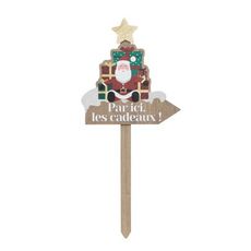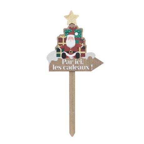 Informations Techniques : Dimensions : L. 27 x l. 1,4 x H. 59,5 cm Matière : MDF Spécificités : Déco & Festive Pancarte déco de Noël A planter ou à fixer au mur Crochet à l'arrière Inscription Par ici les cadeaux ! Poids : 0,23 kg Couleur : Marron