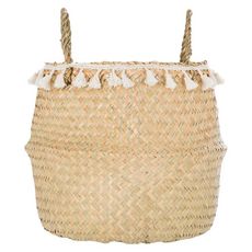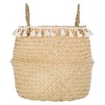 Panier tressé seagrass pli pomponsPour le rangement ou la décoration de la maison, le panier tressé seagrass pli pompons blanc se fera utile en toute circonstance. Véritable objet de déco, il se déplace facilement grâce à ces 2 poignées.Informations sur le panier seagrass pli pompons blanc :Diamètre 31 cmHauteur hors poignées : 27 cmCouleur : naturel et blancComposition : roseau, coton