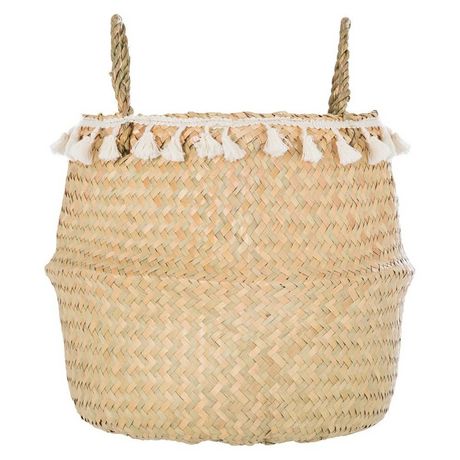 Panier tressé seagrass pli pomponsPour le rangement ou la décoration de la maison, le panier tressé seagrass pli pompons blanc se fera utile en toute circonstance. Véritable objet de déco, il se déplace facilement grâce à ces 2 poignées.Informations sur le panier seagrass pli pompons blanc :Diamètre
