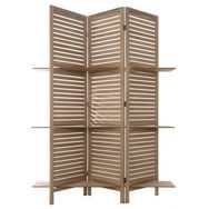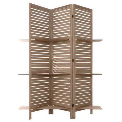 Multipliez vos possibilités de rangement et sublimez votre décoration avec ce paravent 3 étagères Tiam coloris naturel.Ce sont deux accessoires de mobilier en un que vous choisirez avec ce paravent en bois doté de trois étagères. En plus de mettre à votre disposition des tablettes où organiser des livres ou d'autres objets, il vous permettra de séparer votre pièce pour y créer un nouvel espace. Vous pourrez moduler la largeur de ce paravent et en même temps la place dont vous disposez sur ses étagères.Informations sur le paravent 3 étagères Tiam :Couleur : naturelParavent en 3 parties repliablesDimensions : L. 120 x P. 26 x H. 170 cm Dim fermé : L. 40 x l. 5,5 x H. 170 cm Planches : L. 120,3 x l. 20 x ep,1 cmMatières : MDF et PaulowniaPoids : 9 kg