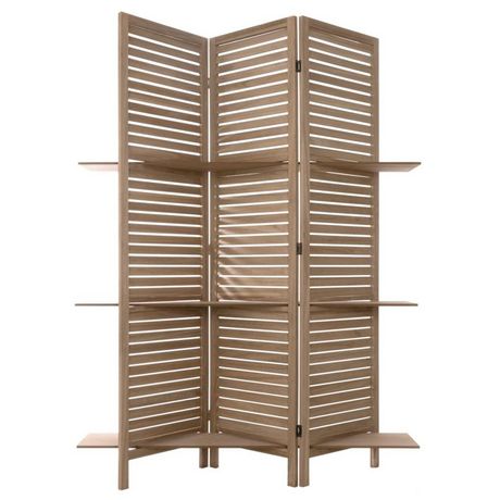 Multipliez vos possibilités de rangement et sublimez votre décoration avec ce paravent 3 étagères Tiam coloris naturel.Ce sont deux accessoires de mobilier en un que vous choisirez avec ce paravent en bois doté de trois étagères. En plus de mettre à votre disposition des tablettes où organiser des l