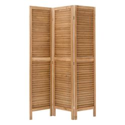 Informations Techniques : Dimensions : Déplié : L. 120 x l. 2 x H.170 cm Plié : L. 40 x l. 6 x H.170 cm Matière : Bois (Paulownia) Spécificités : Authentique & Pratique Paravent 3 panneaux Effet porte persienne Structure pliable Charnières en acier Patins de protections inclus Poids : 4,4 kg Couleur