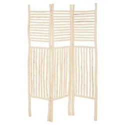 Informations Techniques : Dimensions : L. 119 x l. 4 x H. 169,5 cm Fermé : L. 39,7 x l. 12 x H. 169,5 cm Matières : Bois (Peuplier) & Coton Spécificités : Tendance & Moderne Paravent Design 3 Volets Style Bohème Chic Poids : 10,28 kg Couleur : Beige