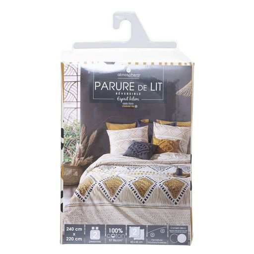 Parure de lit 2 places en coton imprimé Ray Kilim - 240x220 cm - Ocre