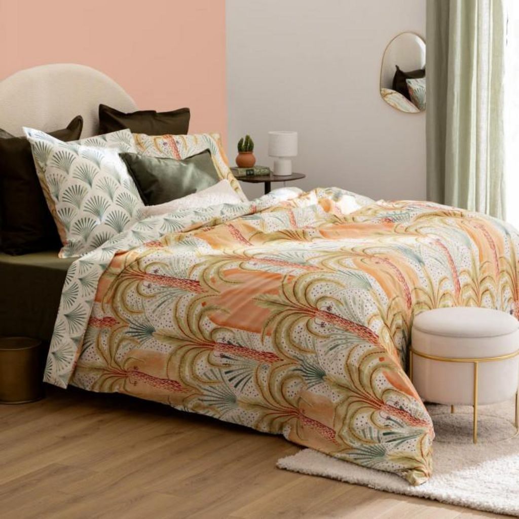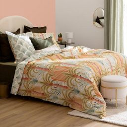 Informations Techniques : Dimensions : Housse de couette : L. 240 x l. 220 x H. 0,5 cm Taie d'oreiller : L. 63 x l. 63 cm Matière : Coton Percale (80 fils/cm2) Spécificités : Douce & Réversible Parure de lit 3 pièces Pour 2 personnes Imprimé palmier Fermeture à boutons Lavable en machine à 40° Labe