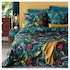 Parure housse de couette + taies d'oreiller en toile pur coton tissée bien serré, douce au toucher, confortable et résistante. Une végétation luxuriante dans une harmonie de couleurs intenses et vibrantes... un linge de lit réjouissant qui donne du peps et une vraie personnalité à la chambre. On adore ! A noter, le verso en camaïeu de verts, comme un supplément de plaisir.