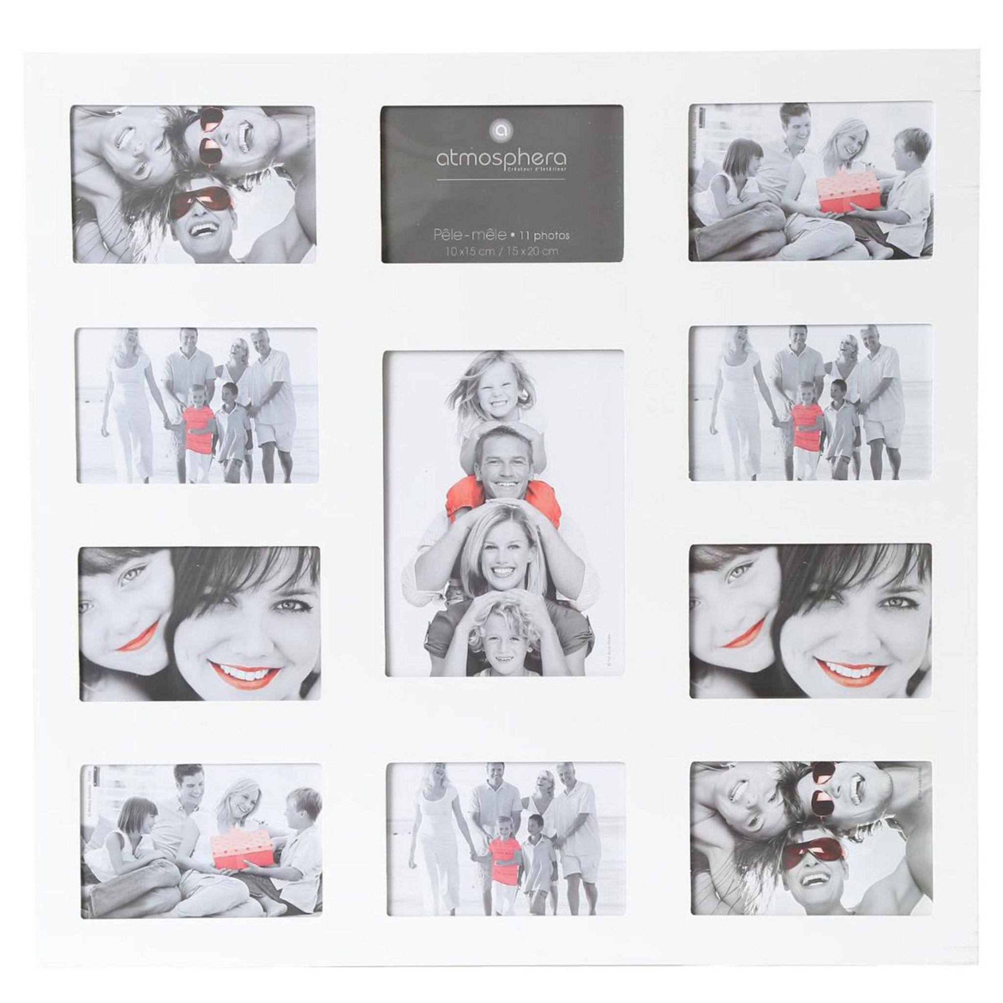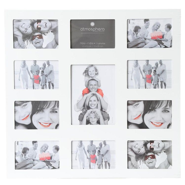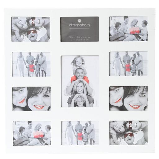 FICHE TECHNIQUE- Pêle mêle en MDF et PVC.- 11 Emplacements pour disposer toutes vos photos.- Convient pour les photos : 1 Photo 15 x 20 cm, 10 photos 10 x 15 cm.CARACTERISTIQUES TECHNIQUES- Dimensions : L. 53 x l. 1,5 x H. 58 cm.- Poids : 1,285 kg.