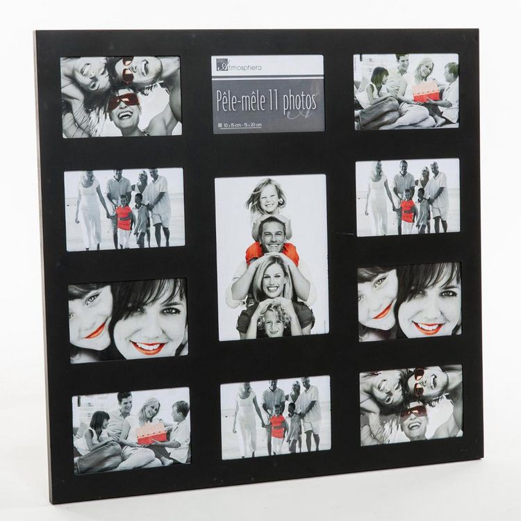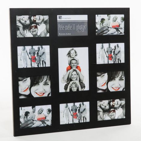 FICHE TECHNIQUE- Pêle mêle en MDF et PVC.- 11 Emplacements pour disposer toutes vos photos.- Convient pour les photos : 1 Photo 15 x 20 cm, 10 photos 10 x 15 cm.CARACTERISTIQUES TECHNIQUES- Dimensions : L. 53 x l. 1,5 x H. 58 cm.- Poids : 1,315 kg.