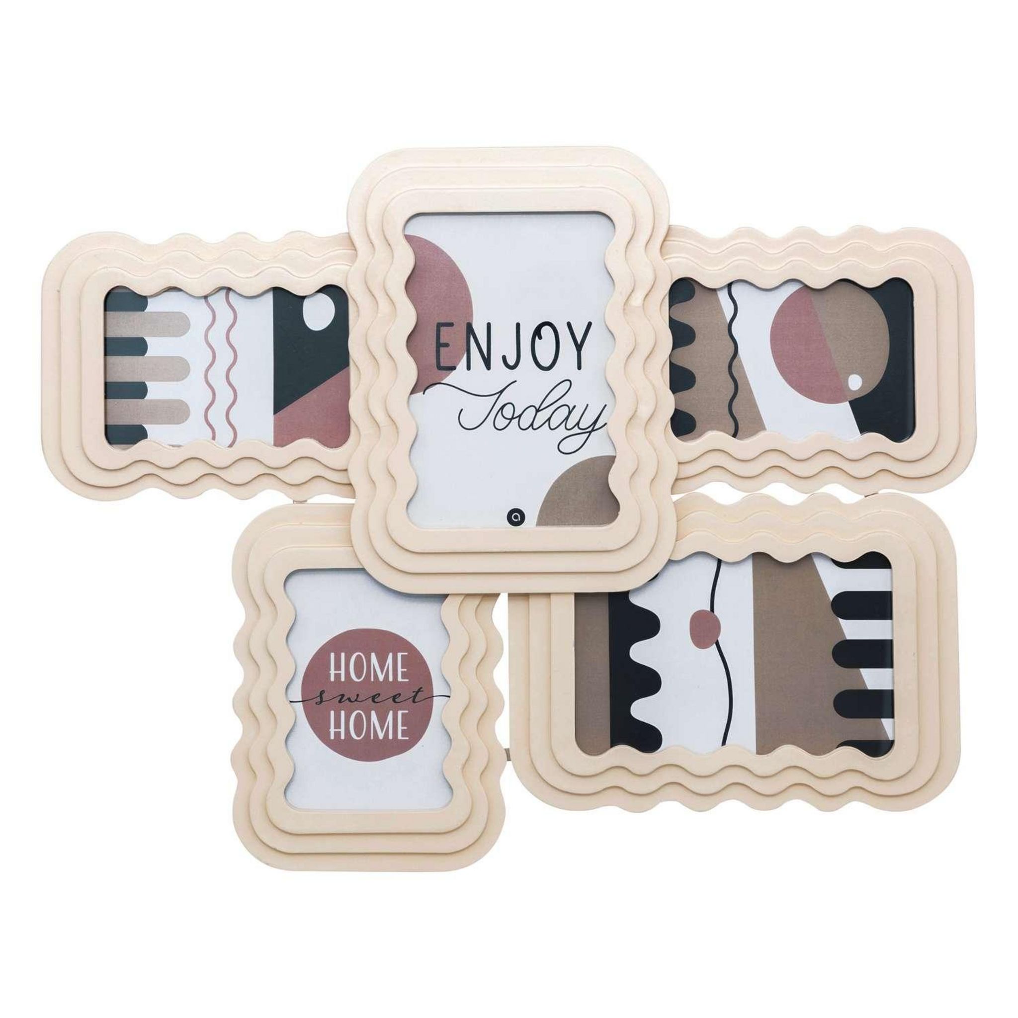 Le pêle-mêle en bois Wavy est pratique pour exposer joliment vos plus beaux souvenirs. Pouvant accueillir jusqu'à 5 clichés, les cadres sont en forme de vagues pour donner un effet très moderne à l'ensemble. À accrocher au mur, en position verticale ou horizontale.
