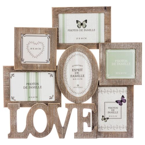Décorez votre intérieur avec un style rustique et exposez vos plus belles photos souvenirs grâce à ce pêle-mêle débordant d'amour.FICHE TECHNIQUE- Pêle-mêle en MDF, PVC et verre.- Convient pour deux photos de 10 x 10 cm et quatre photos de 10 x 15 cm.- Suspension murale pour accrocher facilement le