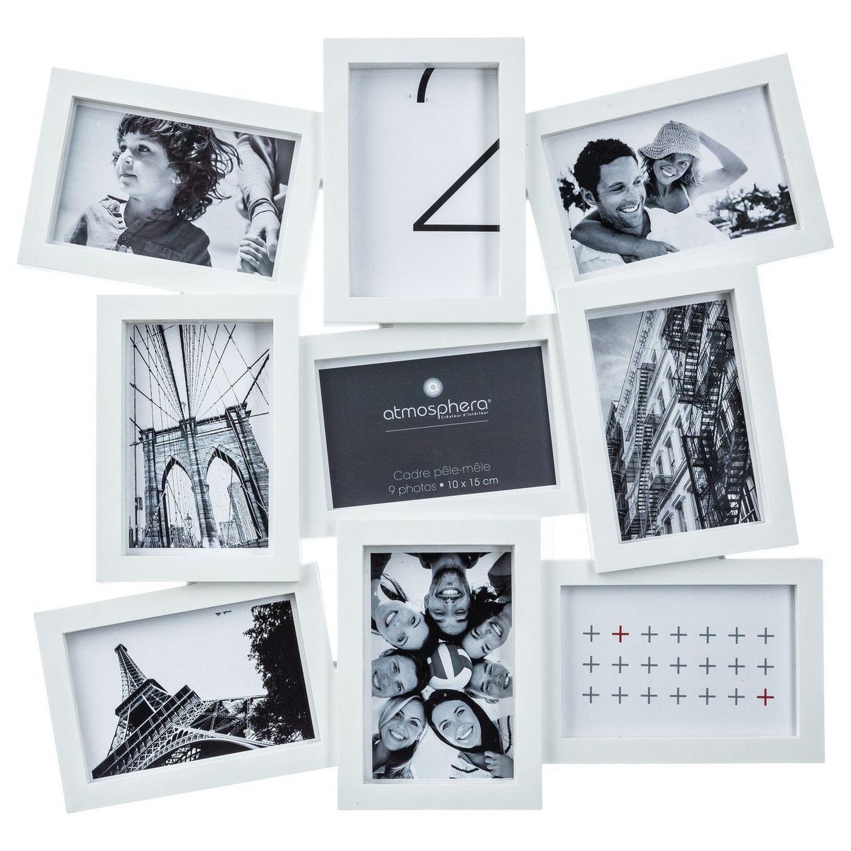 Affichez vos plus belles photos et apportez à la décoration de votre intérieur une touche d'originalité et de modernité.FICHE TECHNIQUE- Pêle-mêle en papier et plastique.- Convient pour neuf photos de 10 x 15 cm.- Suspension murale pour accrocher facilement le pêle-mêle à votre mur.CARACTERISTIQUES