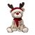 Peluche de Noël Ours avec écharpe et bonnet renne - H. 35 cm - Marron et rouge