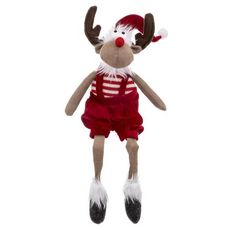 Peluche Enfant Renne Salopette Soir 52cm Rouge