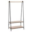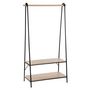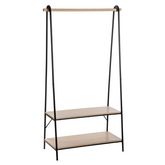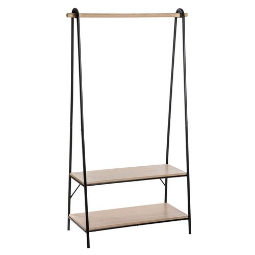 Ce portant à vêtements en bois compte deux étagères de rangement. Découvrez son design bicolore, ses lignes graphiques et son espace dédié aux chaussures ou au sac, il sera parfait dans une entrée ou dans votre chambre.