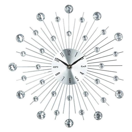 Pendule Alu Strass Ø33cmAmbiance chic sobre avec cette belle pendule en métal Strass de 33 cm de diamètre. Originale et terriblement chic, cette toute nouvelle horloge murale à l'esprit glamour sobre éveillera la curiosité de vos visiteurs. Son style métallique étoilé parsemé de strass fera sans nul doute bonne figure dans votre ingtérieur. Fonctionne avec une pile LR06/AA non incluse. Pendule à usage exclusivement intérieur.Informations sur la pendule Alu Strass :Dimensions : diamètre 33 cmPoids : 0,5 kgCouleur : effet aluminium brossé + strass