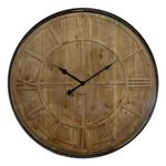 Informations Techniques : Dimensions : D. 80 x H. 6 cm Matières : MDF, Fer & Bois (Sapin) Spécificités : Design & Authentique Pendule silencieuse Fonctionne à piles, 1 x AA/LR6 non incluse Mouvement Youngtown 12888 Poids : 7,36 kg Couleur : Naturel