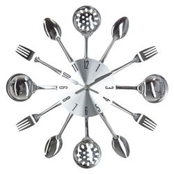 Pendule Ustensiles - Diam. 38 cm - Argent
