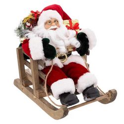 Père Noël sur Luge Déco Velours 26cm Rouge