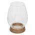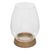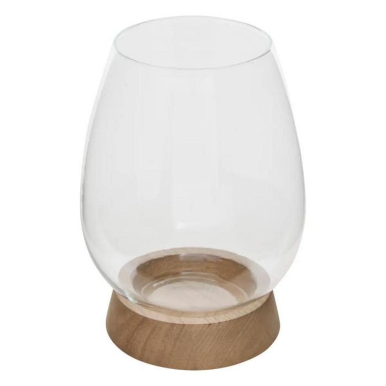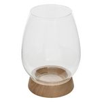 Informations Techniques : Dimensions : D. 13,5 x H. 18,5 cm Matières : Verre & Bois Spécificités : Déco & Tendance Photophore en verre Base en bois Poids : 0,4 kg Couleur : Transparent