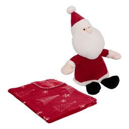 Plaid 90x75 cm et peluche père Noël - Rouge
